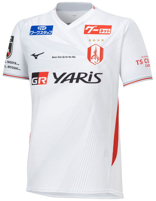 2024シーズンはJリーグの統一フォント制が廃止となり、名古屋はシャチの身体的な特徴をデザインに取り入れたオリジナルフォントのネームナンバーを採用。背番号下部にシンボルマークを配する。