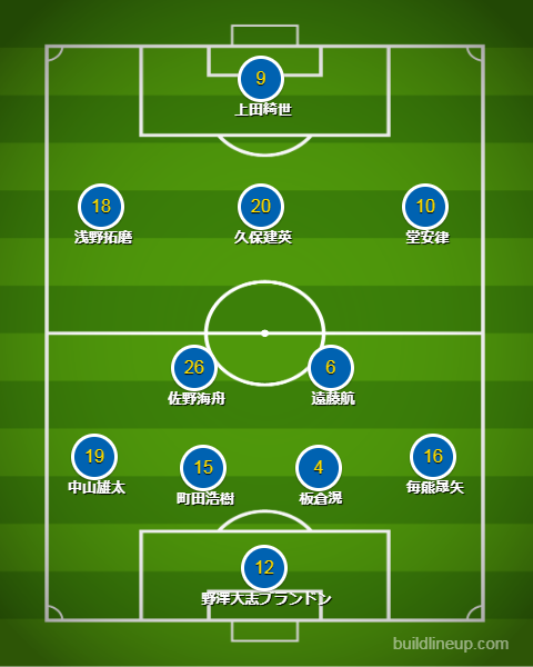 MF:遠藤航、佐野海舟、堂安律、久保建英、浅野拓磨