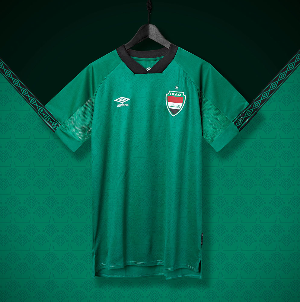 イラクは2021年にUmbroと再々婚。3度目のパートナーシップを締結している。その最初のユニフォームはパッとしないものだったが、次に出てきたこのユニフォームは、その美しさに世界中のマニアックなユニフォームファンが驚嘆した。