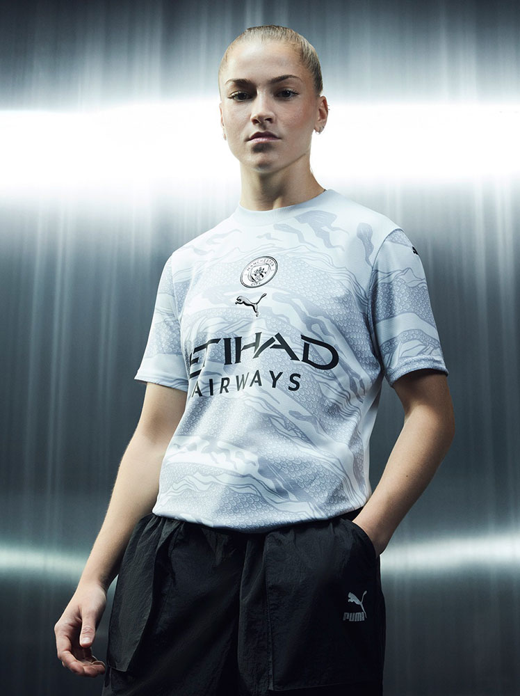 2024年の春節を祝う特別コレクションで最も注目されているのが、ドラゴンを前面に描いたユニフォーム。神話上の生き物ドラゴンとマンチェスター・シティには、パワーと流動性という共通点があるとクラブ側では説明する。