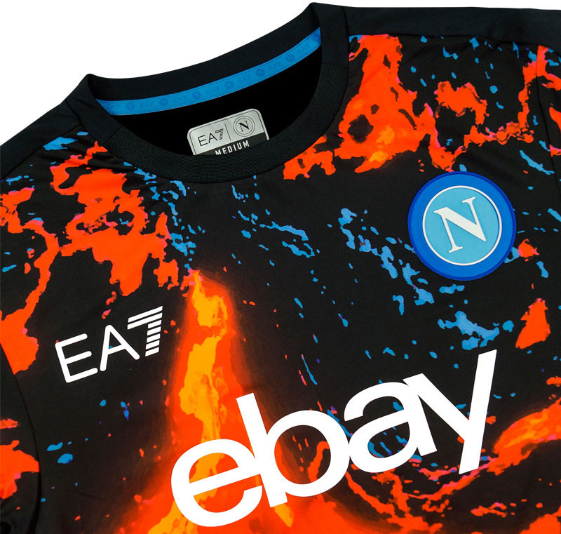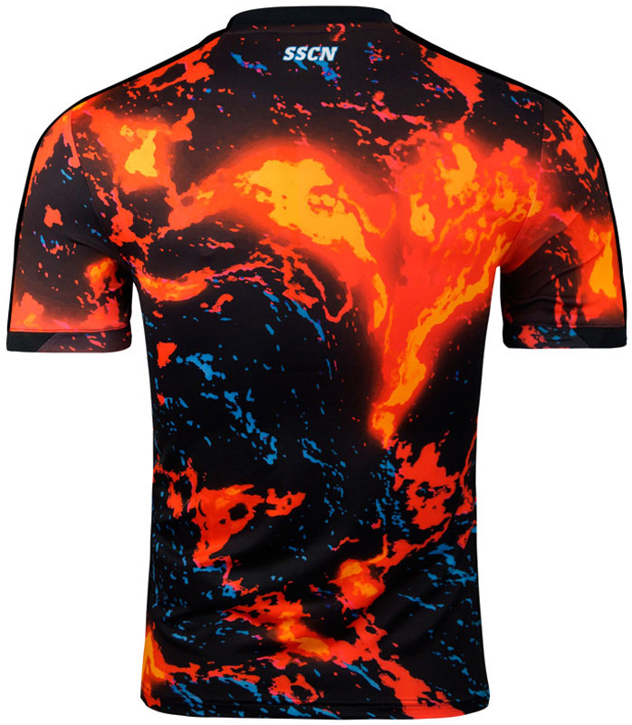 ブラックを基調にオレンジとブルーが鮮やかなデザインは、ホームタウンのナポリを象徴するヴェスヴィオ山とそのマグマを表現したもの。