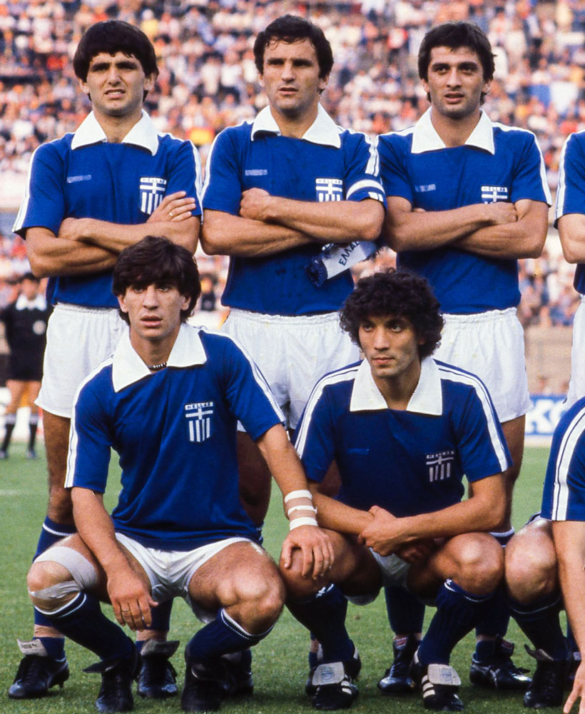 実はEURO1980で着用したユニフォームはサプライヤーロゴが隠されている。当時はブランドロゴの掲出が認められてなかったからで、多くのチームはロゴを外して大会に臨んだ。ロゴ付きユニを着用の場合は、このギリシャのようにテープなどで覆い隠す措置が取られている。