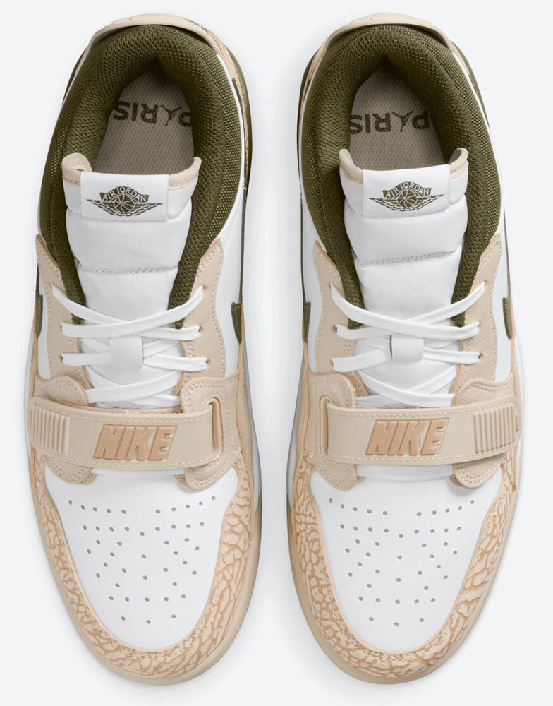 ヒール部分にはグリーンでPSGのエンブレムをデザイン。アーシーなカラーリングが絶妙だ。インソールにはジョーダンブランドの象徴であるジャンプマンをデザインした"PARIS"のロゴ入り。