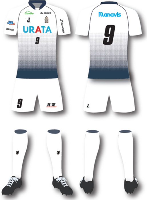 新アウェイユニフォームも引き続きホワイトを基調とし、ダークブルーへと変わるグラデーションのデザイン。