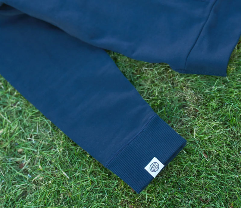 背面の左下に「KAFC」のタグを縫い付け、右の袖口にも小さめの「KAFC」タグを取り付け。