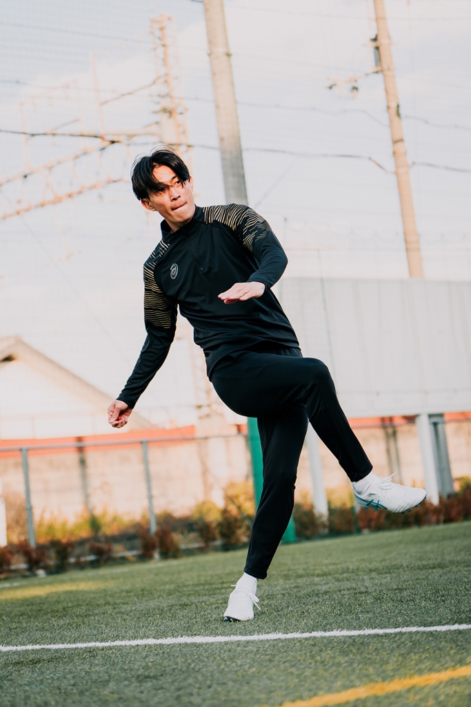 「このたび、アシックスアスリートの一員になりました毎熊晟矢です。アシックスのスパイクは軽くて履きやすいだけでなく、足への負担が少ないのでとても助けられています。新品でもすぐに試合で履けるような、足なじみの良いところが気に入っています。このスパイクを履いて、結果を残せるよう頑張りますので、応援をどうぞよろしくお願いいたします」