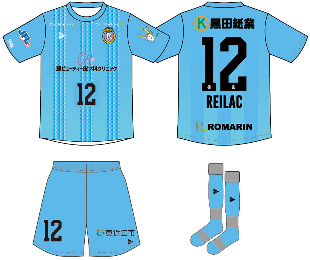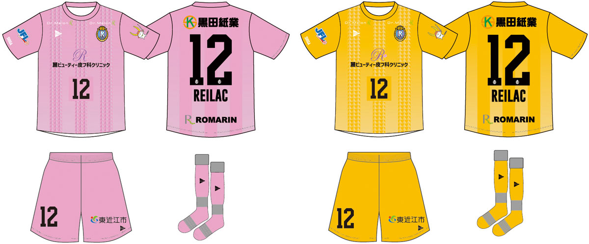 現時点での各部スポンサーは、胸に「麗ビューティー皮フ科クリニック」、背中上に「黒田紙業」、背中下に「ROMARIN(ロマラン)」、左右鎖骨に「Dr. Melon」、パンツ前面に「東近江市」。