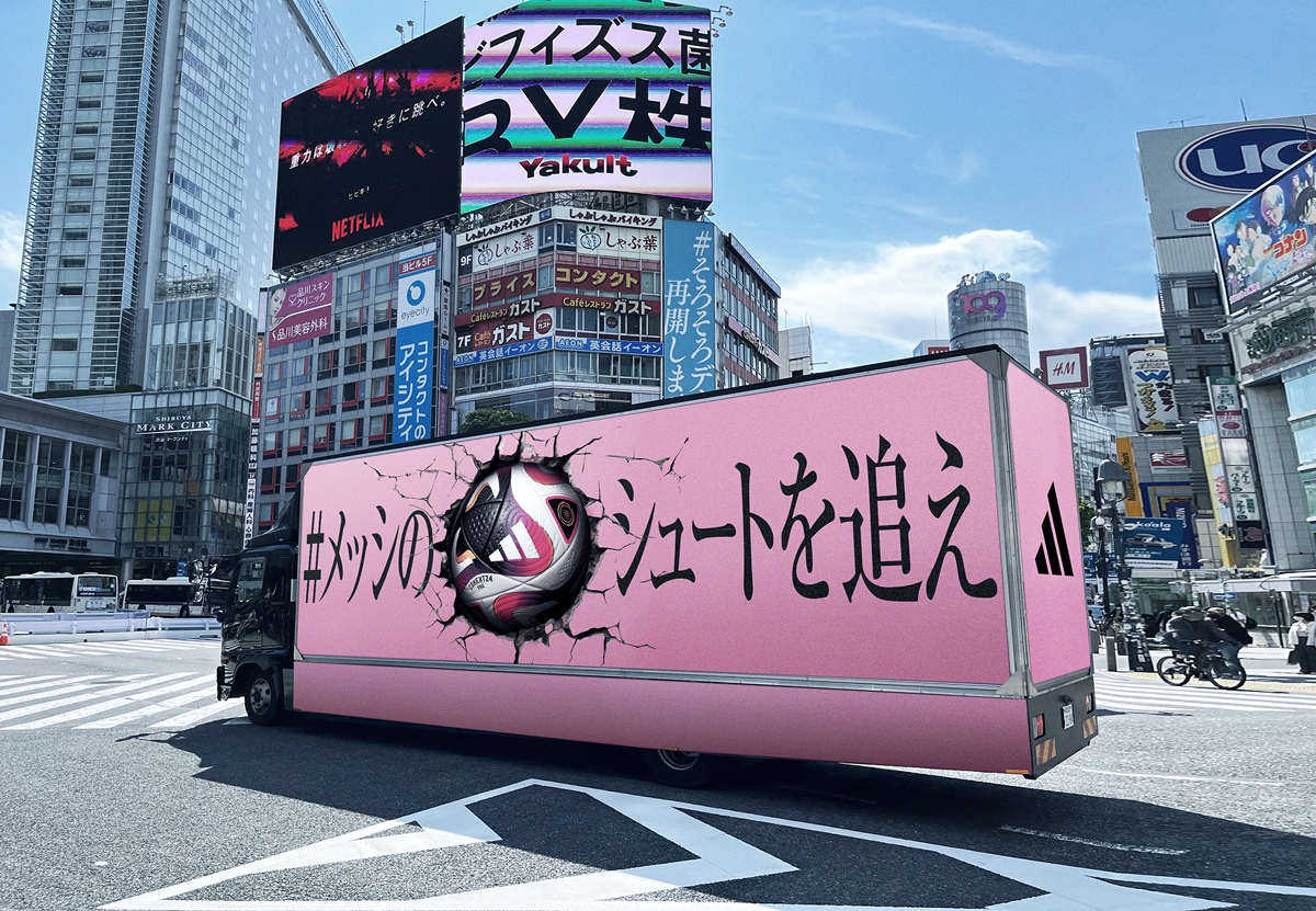 今回登場するMIYASHITA PARKや国立競技場前といったロケーションには、キャンペーンの一環として、インテル・マイアミホームユニフォームを身にまとったメッシが鮮やかにシュートを決める大型ビジュアルや、巨大なボールを描いたストリートビジュアルとアドトラックが、期間限定で実際に出現。