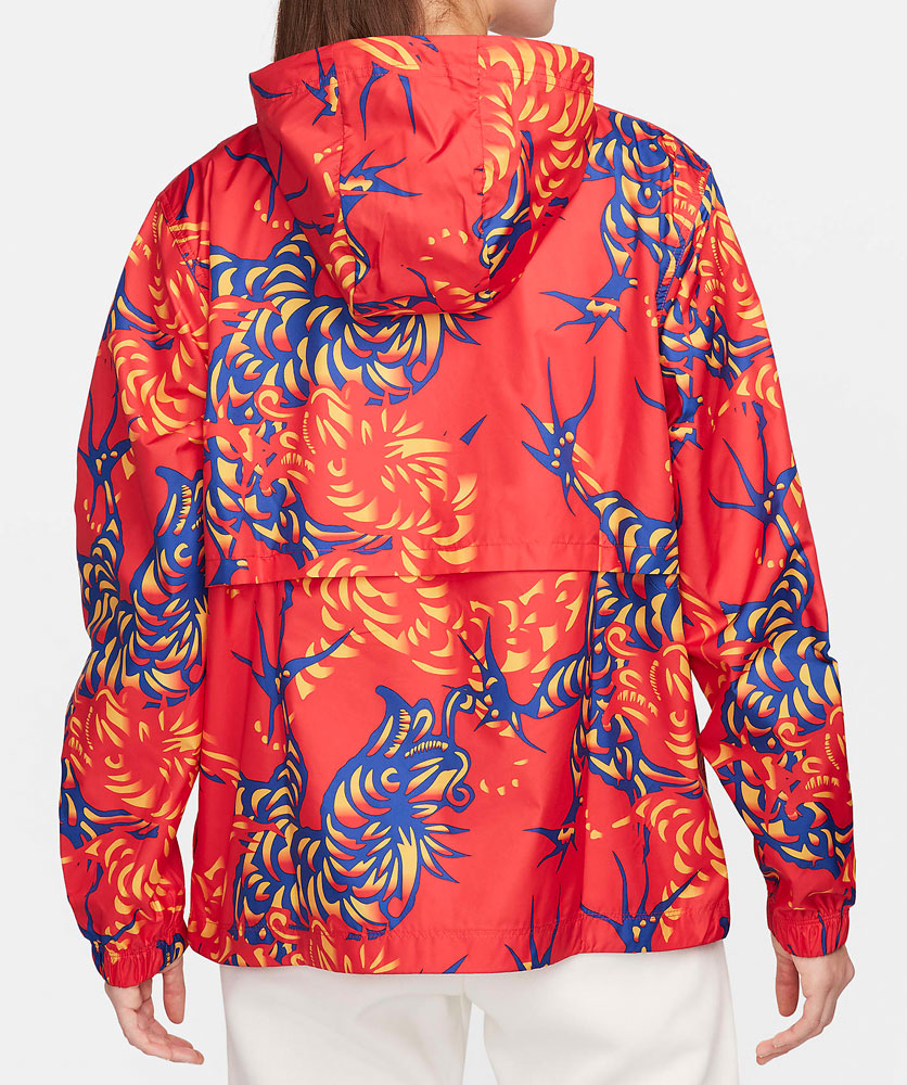 全体に龍をデザインした女性用ジャケットで、男性用の販売はない。表地は撥水加工されているため急な雨にも安心。背面にフード付き。同デザインの別売りパンツを合わせればウーヴン・トラックスーツが完成する。