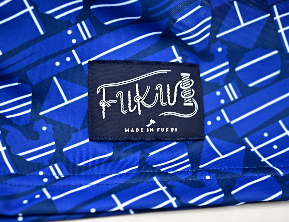 今季のデザインコンセプトは「福井の伝統工芸」。福井県の7つの伝統的工芸品(越前漆器、越前打刃物、越前和紙、越前焼、越前箪笥、若狭塗、若狭めのう細工)をモチーフにそれぞれをアイコン化し、シャツ全面に散りばめている。