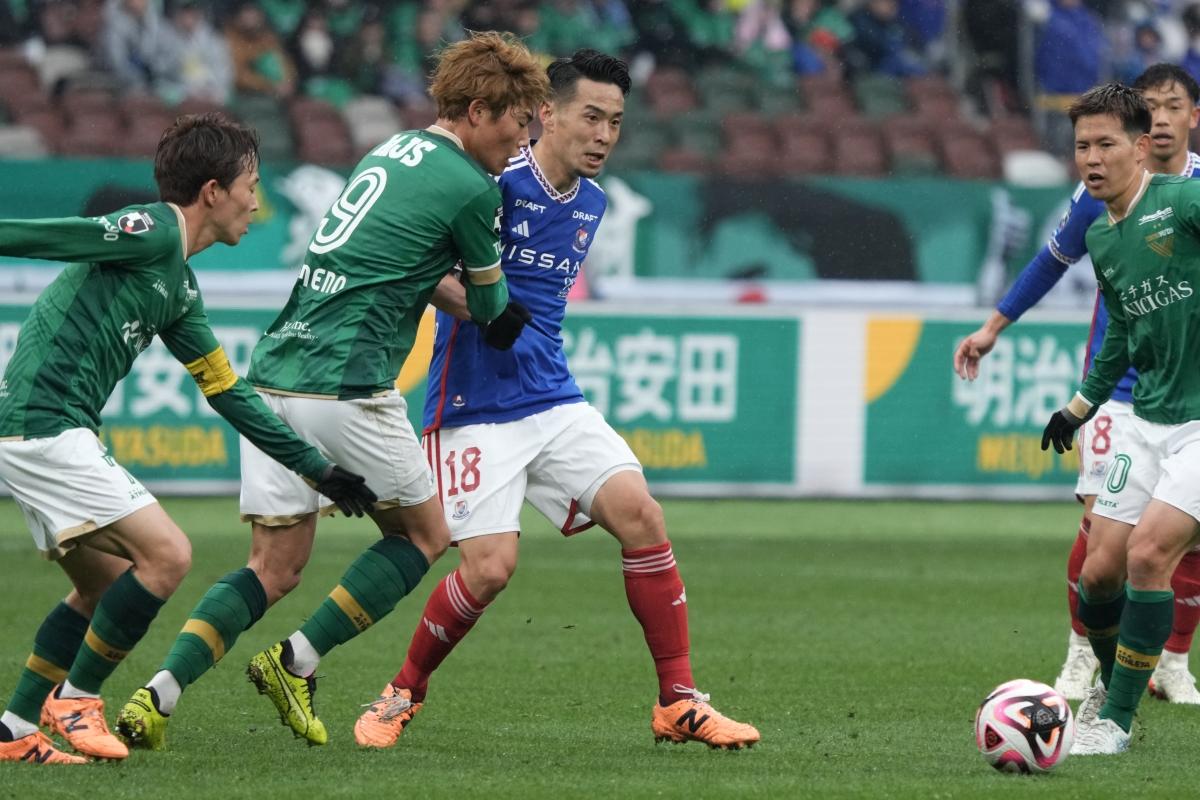 この日横浜FMの元日本代表MF水沼宏太は4-1-2-3の右ウィングで先発して開幕戦に臨んだが、序盤から東京Vの勢いに押し込まれる形で良さを出すことがなかなかできなかった。