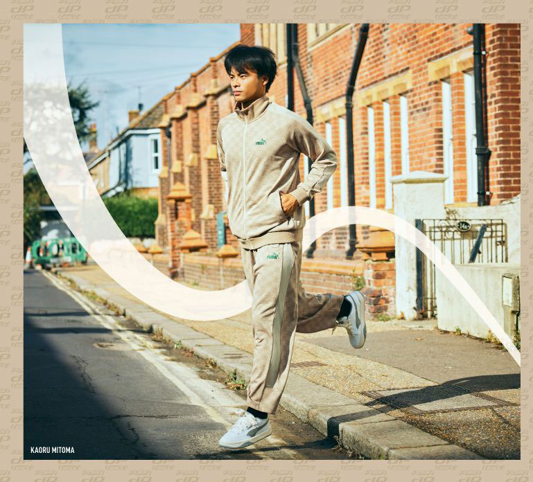 三笘選手は2回目のCORE HERITAGEの撮影ともあり、モデルさながらのウォーキングやポージングで撮影。プーマファミリーの川口春奈さん、三笘薫選手、堂安律選手が着こなすPUMA ONE-LINEのコーディネートにも注目だ。
