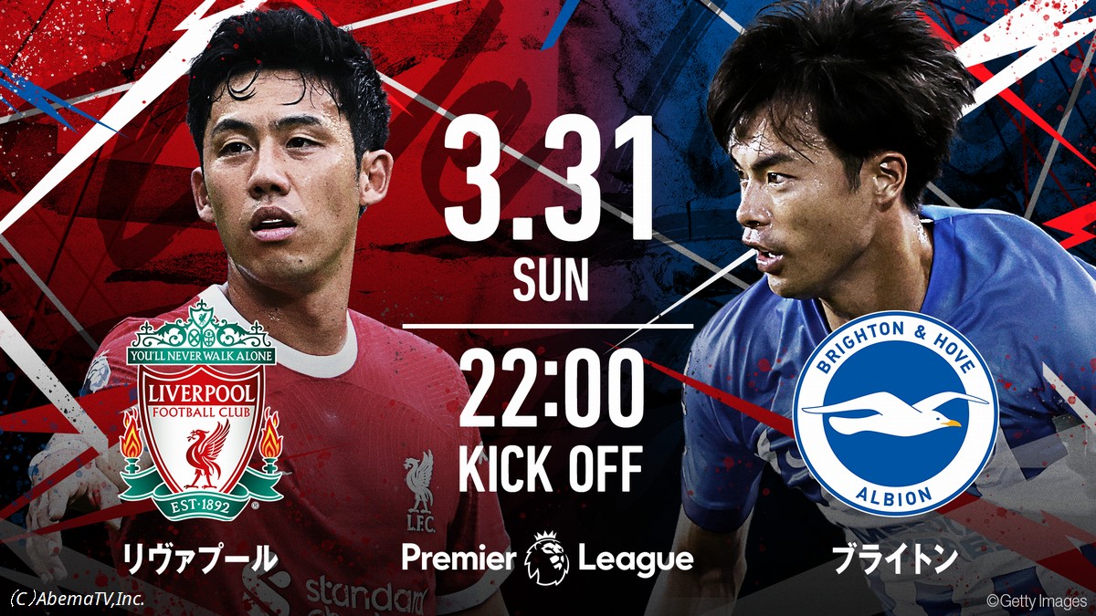 「リヴァプールvsブライトン」/キックオフ時間:3月31日(日)午後10時~(ABEMAプレミアム)