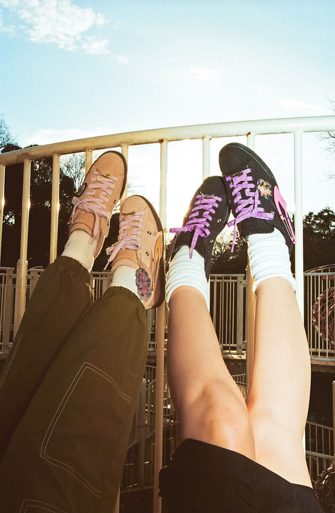 本コラボレーションは、クラシックなストリートスタイルにモダンでフェミニンな要素を加えたデザイン。
