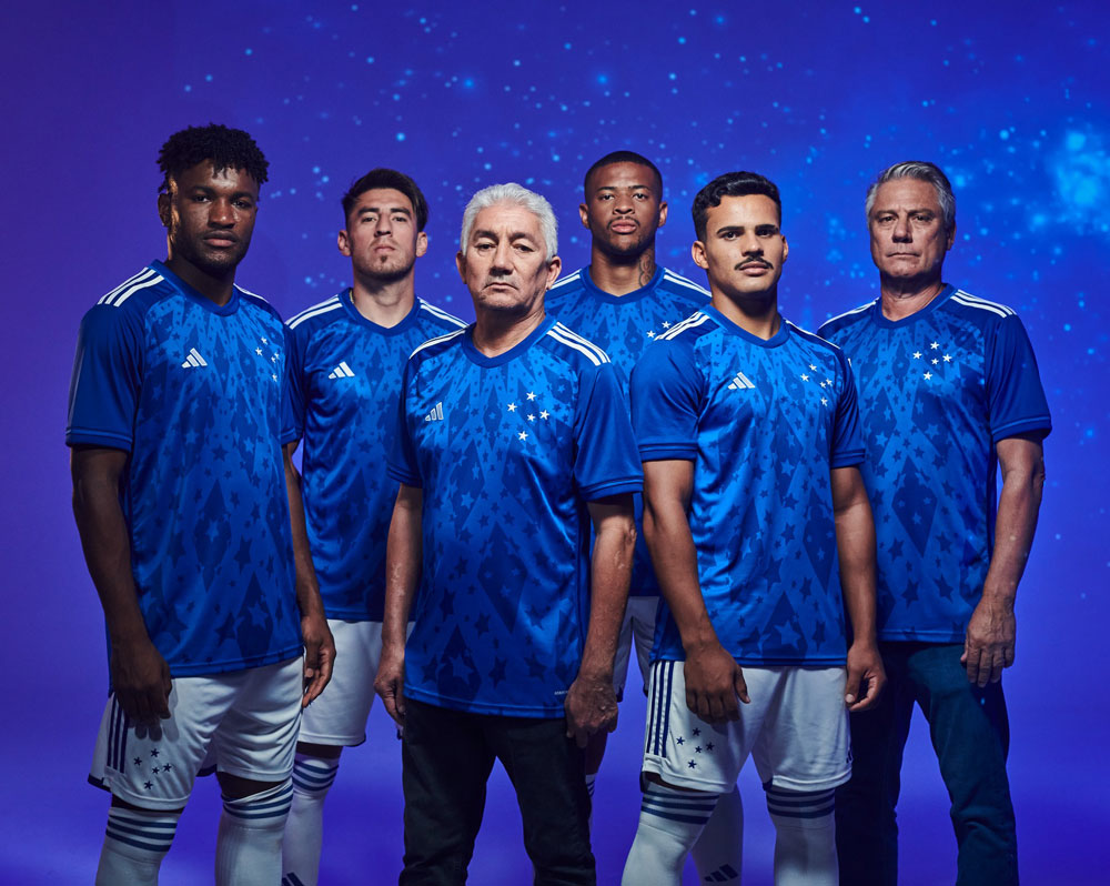 ホームタウンのベロオリゾンテにあるプラネタリウムで撮影したという今回のビジュアルには、現在の選手とともに90年代にクラブに所属し「星とダイヤ柄」を着ていたノナット(中央) とドウグラス(右端)も参加。2人ともロナウド時代に活躍したレジェンドだ。
