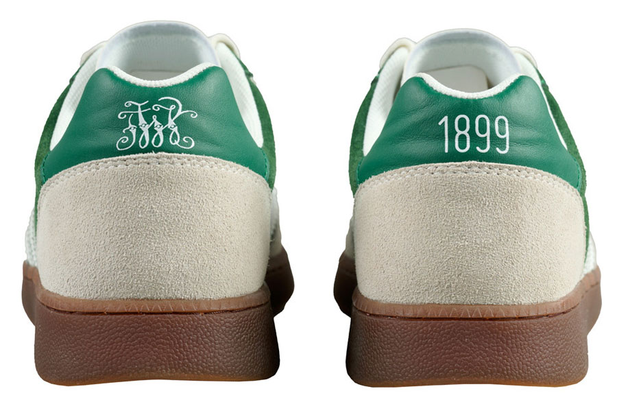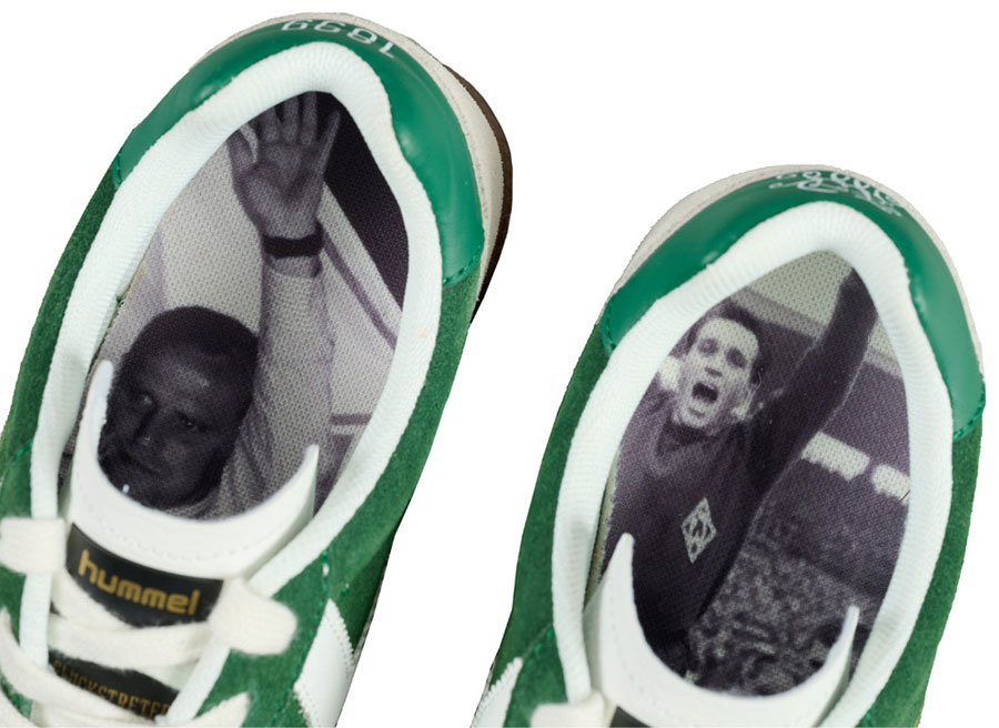 125周年記念エディションでリリースされたスニーカーは、クラブカラーのグリーンを基調としたクラシックスタイルの一足。hummelの人気スニーカー「VM78」をベースにしたコラボモデルで、地元ブレーメン地区のスニーカー専門店「Glückstreter」も協力して製作された。