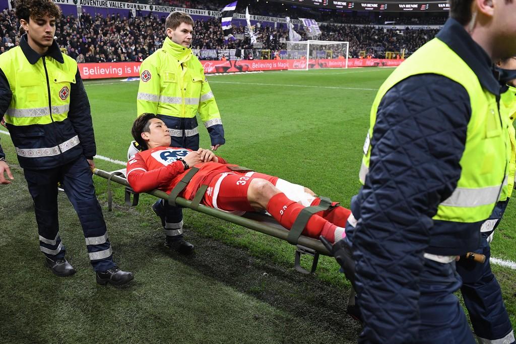 先日行われたアンデルレヒトとの試合中に負傷し、プレー続行が不可能になっていたDF角田涼太朗。