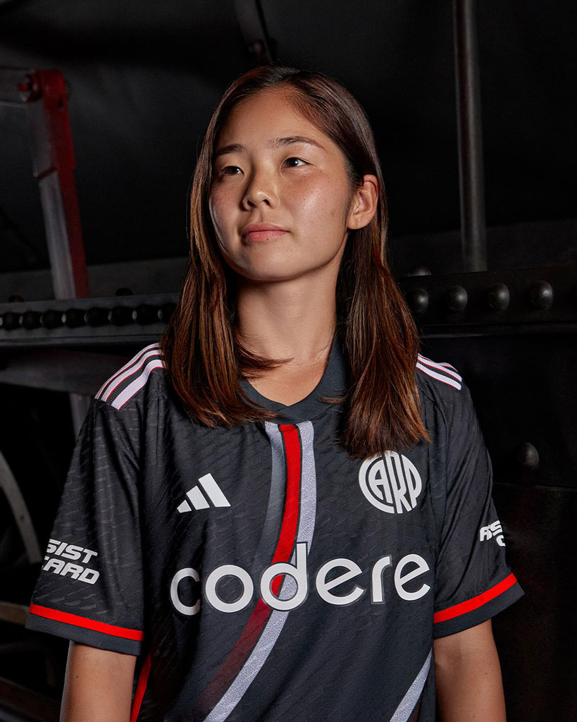 江頭も参加した男女選手によるビジュアルは、リーベル博物館で撮影。パンツとソックスもダークグレーを基調色でまとめている。リーベルのユニフォームに多いブラックではなくこの色ということは、機関車のボディをイメージしたものかもしれない。