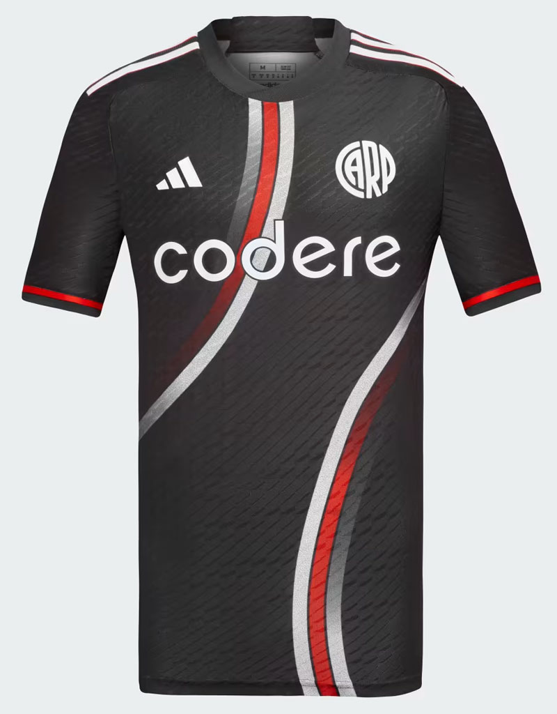 新サードユニフォームはダークグレー(adidasの色名はカーボン)を基調に、曲線のストライプがユニーク。リーベルのユニフォームとしては、少々風変わりなデザインかもしれない。