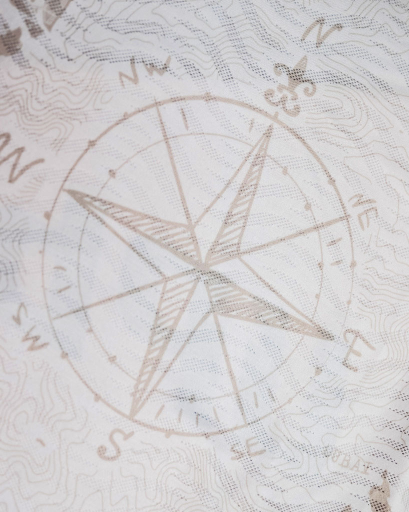 もう一つ特徴的なグラフィックが、腹部に大きく描かれたコンパス・ローズ(羅針盤)。
