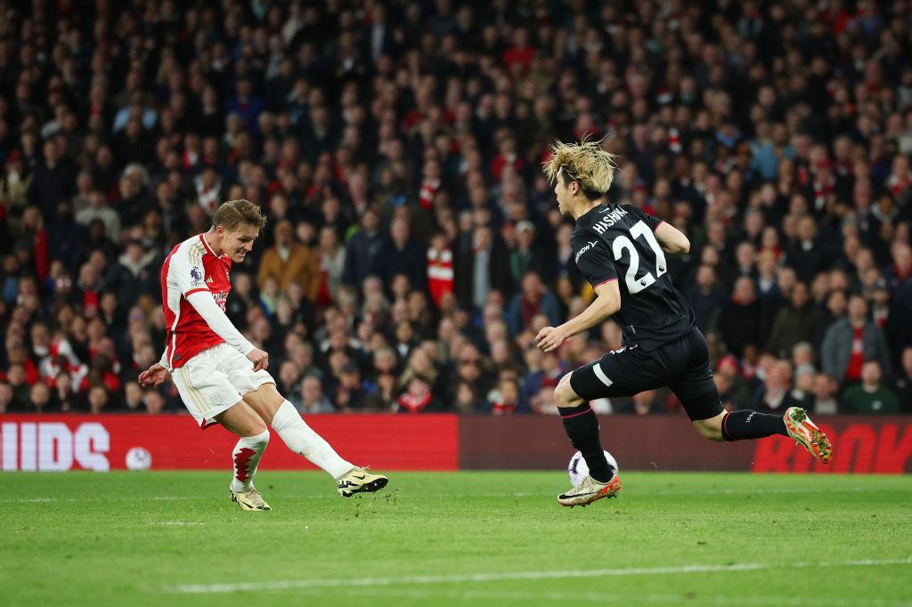動きがあったのは前半24分。カイ・ハヴァーツのパスを受けたマルティン・ウーデゴールが強烈なシュートを叩き込み、アーセナルに先制点が生まれた。