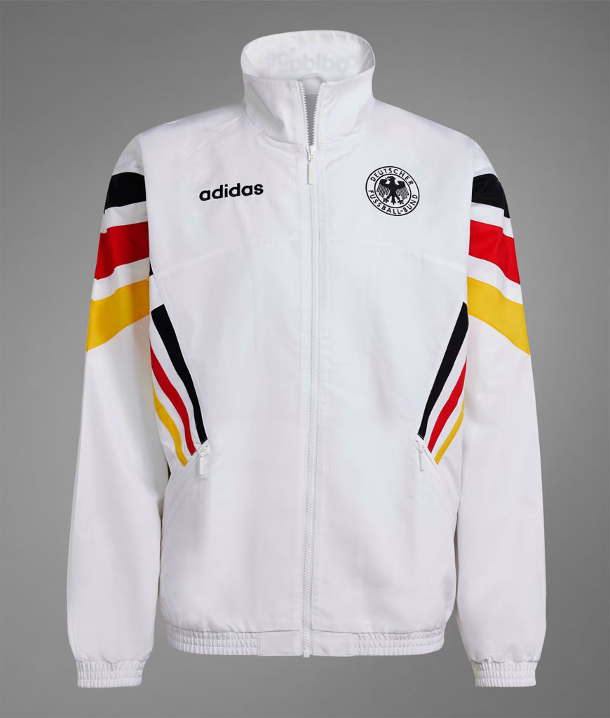 ドイツが優勝した1996年の欧州選手権(EURO1996)などで使用したデザインを復活させたアイテム。腕から脇にかけてのスリーストライプスが大胆なジャケットだ。