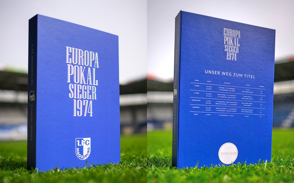 当時の大会は、1回戦、2回戦、準々決勝、準決勝までをホーム・アンド・アウェイ方式で開催。そのためマクデブルクは決勝戦を含め9試合を戦った。ボックス裏にはその全9試合の記録を掲載し、タイトル獲得までの軌跡を完全網羅したものとなっている。