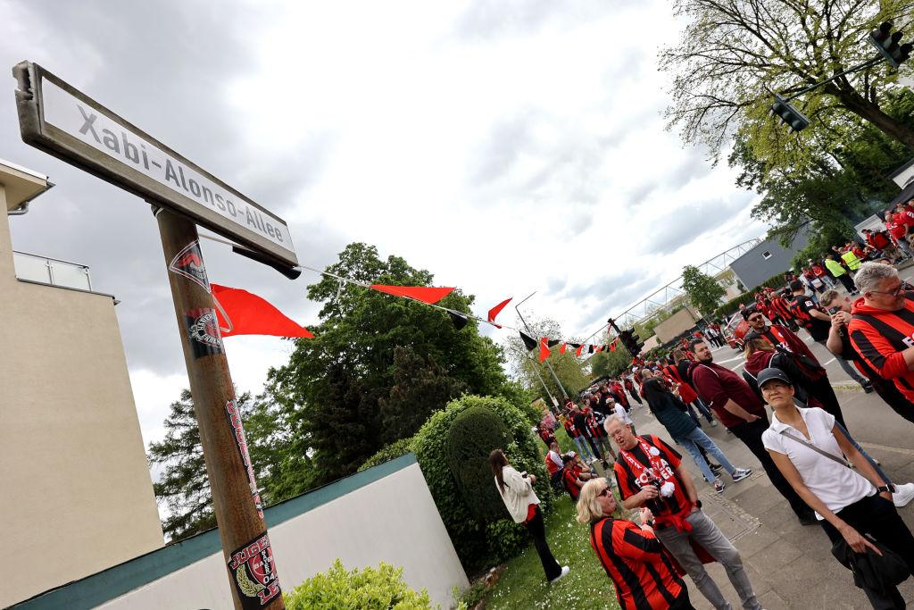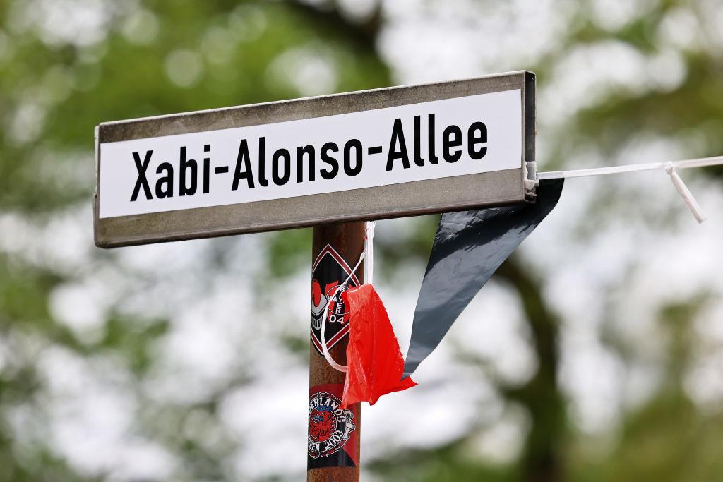 レヴァークーゼンのファンたちは英雄になった指揮官を讃えるべく、「シャビ・アロンソ通り」との文言を道路標識に貼り付けていたそう(Alleeは通りという意味)。