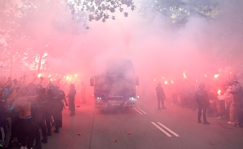 バルサで最も過激なサポーターたちは「くたばれ、PSG」などと叫びながら、チームバスに石などを投げつけていたそう。ただ、敵であるPSG側ではなく、間違えて味方のバスに投げてしまっていたとか。