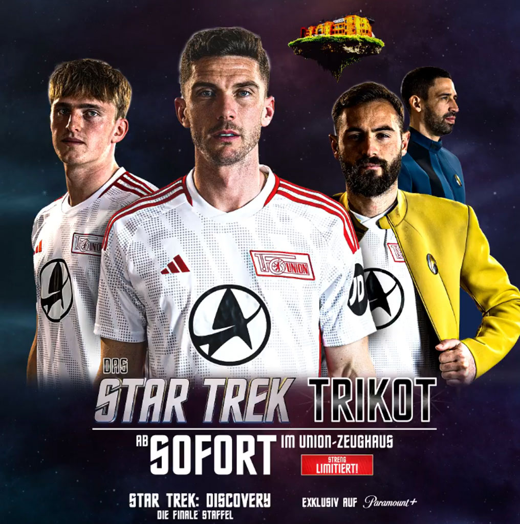 ウニオン・ベルリンは、通常のスポンサー「Paramount+(パラマウントプラス)」ではなく、日本にもファンが多いアメリカの人気SFテレビドラマ『スター・トレック』シリーズに登場する“デルタ”ロゴを掲出。レヴァークーゼン戦で着用した。