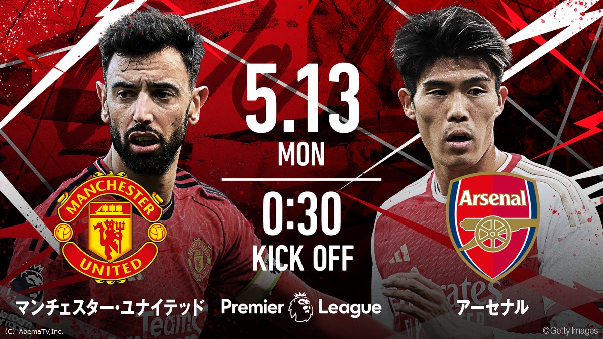 - 「マンチェスターU vsアーセナル」/キックオフ時間:5月13日(月)午前0時30分~(ABEMAプレミアム)