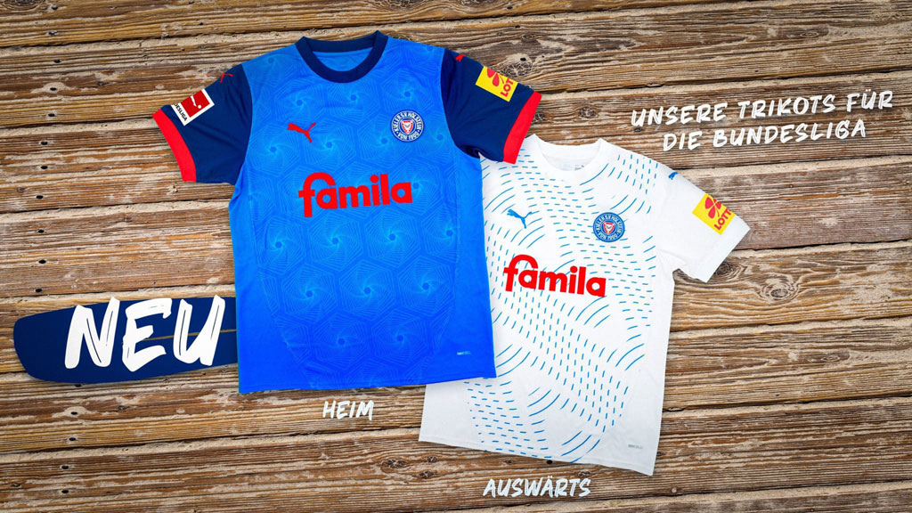 各ユニフォームの胸スポンサーはドイツのスーパーマーケットチェーン「Famila」で継続。同社は国内で4つの会社に分かれており、クラブが契約するのはドイツ北東部エリアの「Famila」だという。