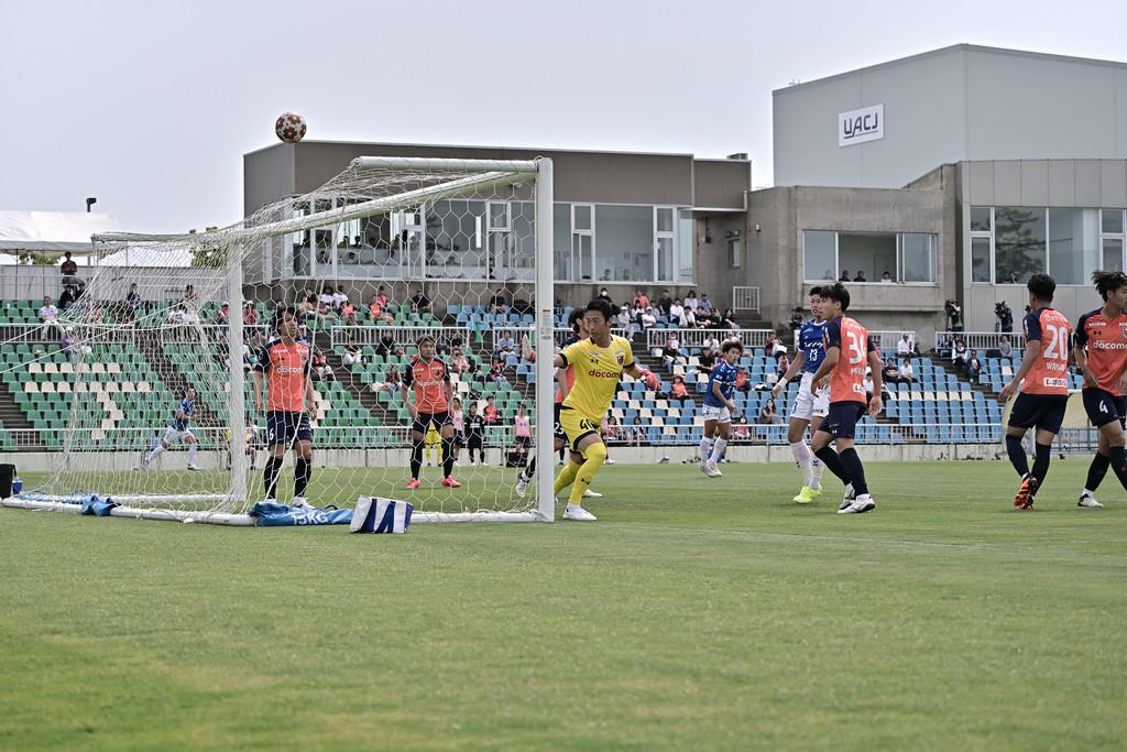 そして後半も同点に追いつこうという強烈な意欲を見せてスタートし、コーナーキックから押谷祐樹のヘディングでゴールに迫る。