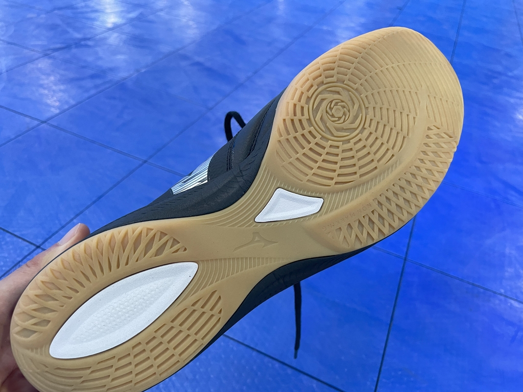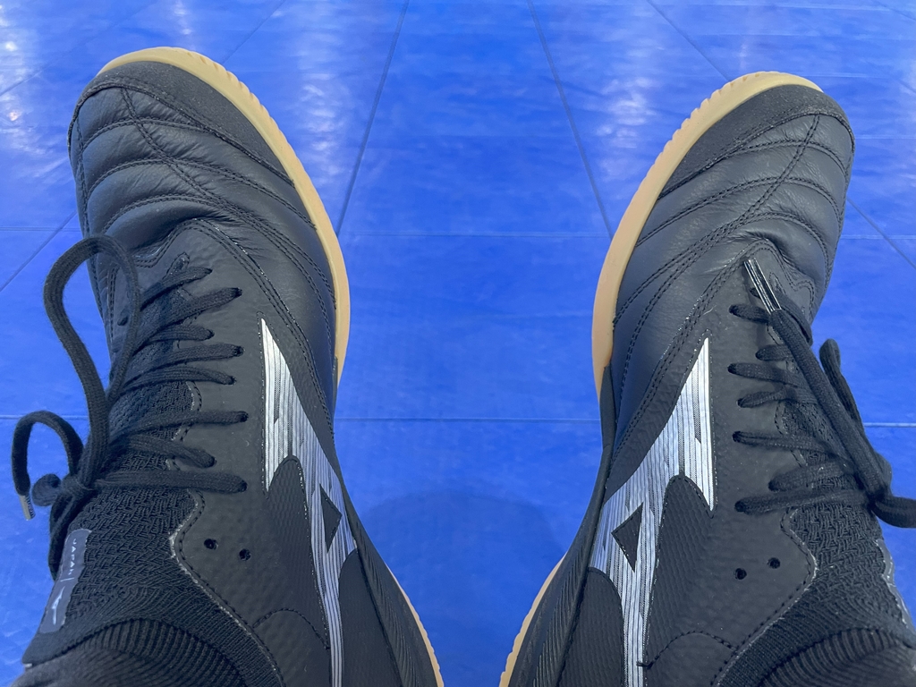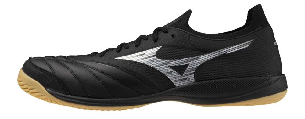 『モレリア サラ JAPAN』と同様に、アッパー前足部には足なじみの良い柔らかい天然皮革を、中足部には柔らかく適度なホールド感を追求したソフト人工皮革を採用し、フットサル特有のクイックとストップの動作をサポートします。ミッドソールには、軽量性に優れたミズノ独自開発のミッドソール素材「U4ic(ユーフォリック)」を採用しています。