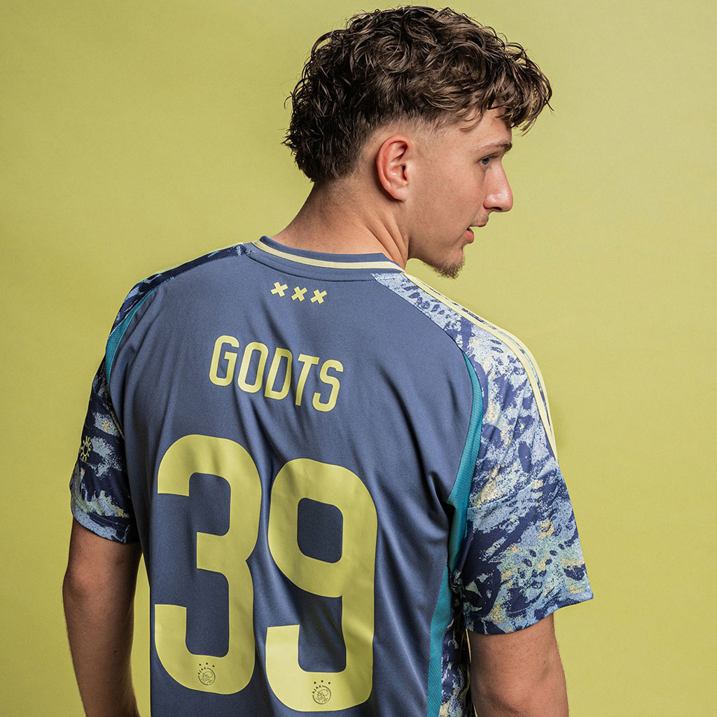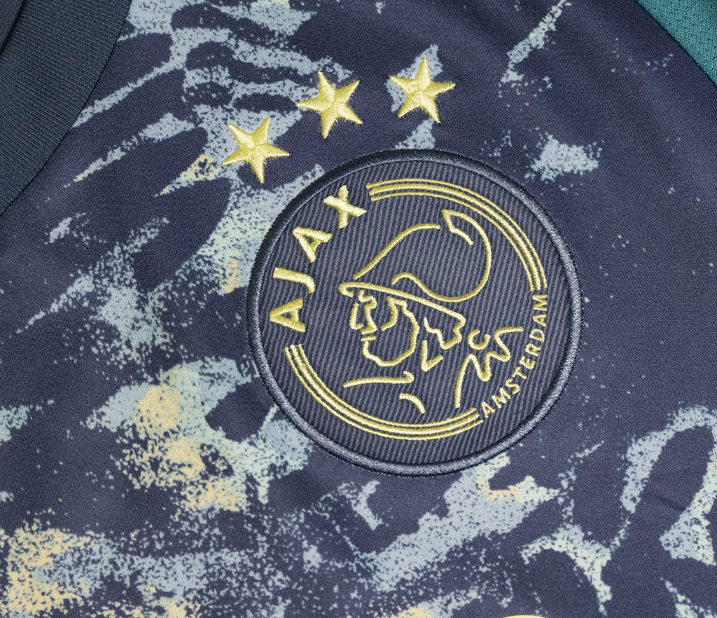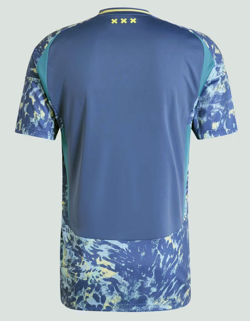 24-25新アウェイユニフォームは、抽象的なグラフィックを全面に描くブルーグレー基調のデザインが登場。最近のアヤックスには、今回のような鮮やかなデザインが増加傾向にある。