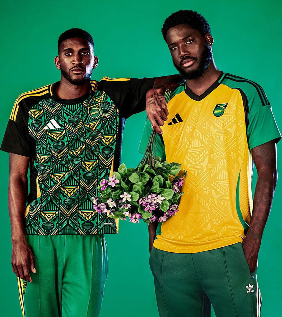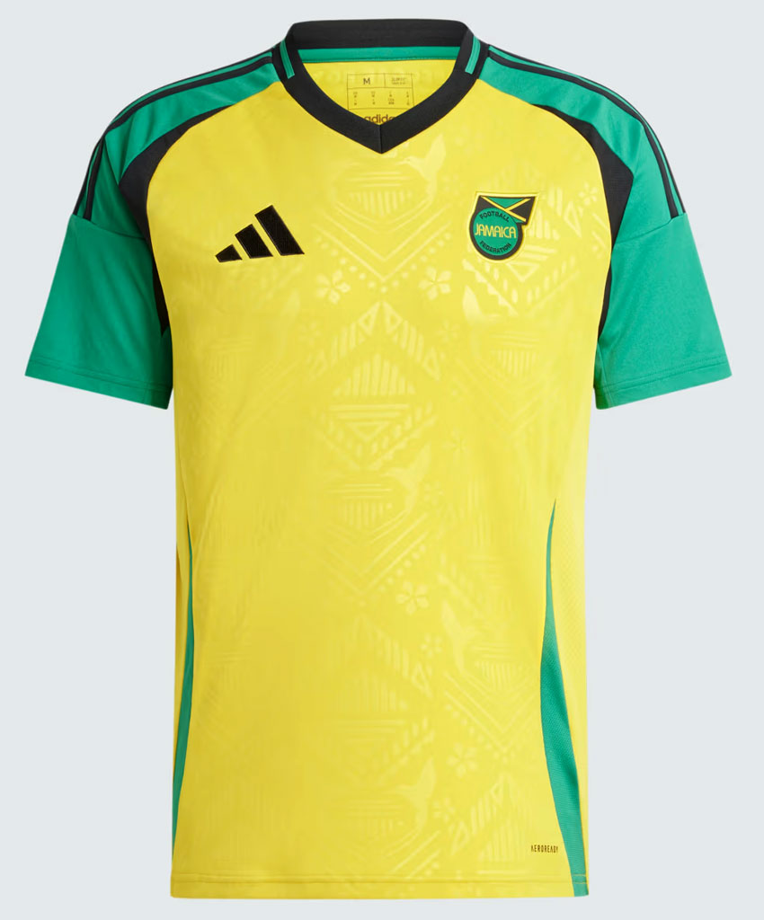 2024新ホームユニフォームはチームカラーのイエローを基調に、グリーンとブラックを絶妙に組み合せた国旗カラーのデザイン。前モデルよりもジャマイカ国旗を強く意識したカラーリングとなっている。
