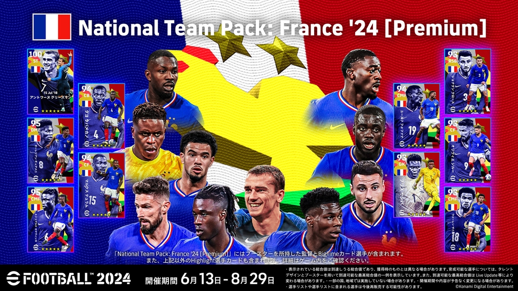 キャンペーンに参加することで、アルゼンチン代表とフランス代表の選手が無料で獲得できるほか、欧州・南米の強豪6か国の代表選手11人と監督がそれぞれセットになった「National Team Pack」も配信!