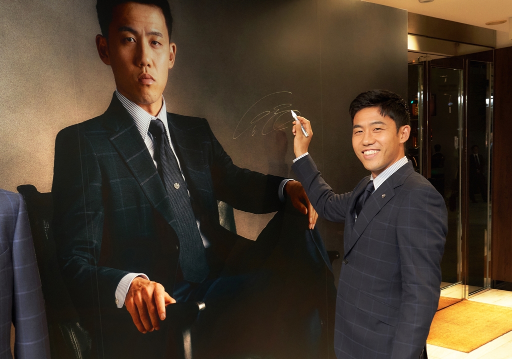 dunhillが掲げる伝統を重んじながらも変化を受け⼊れ、常に進化する⼈。⾃分のセンスに⾃信を持ち、野⼼的で向上⼼のある、ブレない⼈を指す『洗練された紳⼠像』に関して加藤さんが「まさに遠藤選⼿のことを指していますね」と語ると、遠藤は「そうですかね...」と照れ笑いを⾒せる場⾯も。
