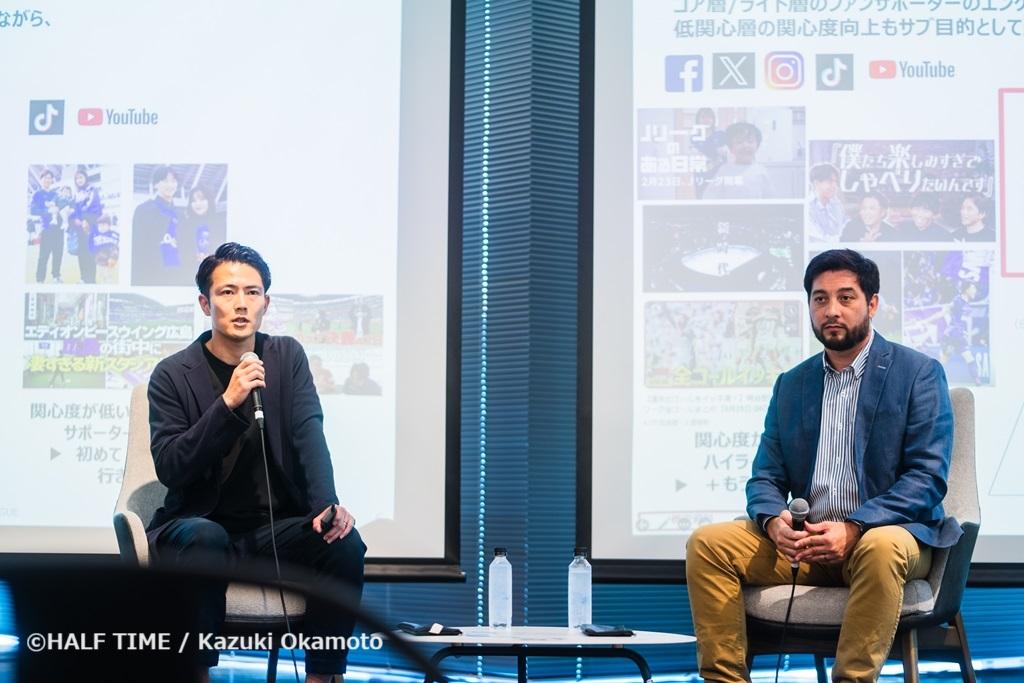 登壇したのは、「Jリーグ」事業マーケティング本部プロモーション部兼マーケティング部兼クラブサポート本部クラブ事業・メディアサポート部の高田佑平氏と、「WSC Sports」日本責任者の中川ベン氏(モデレーター)だ。