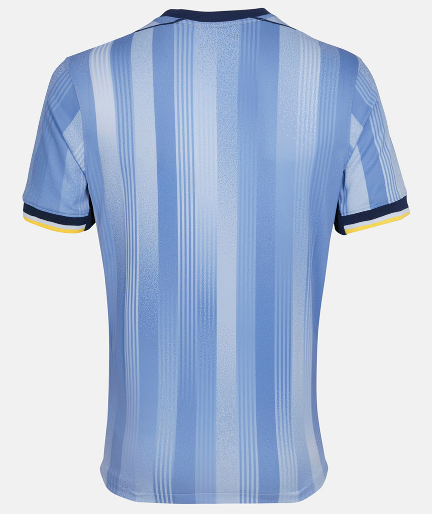 2024-25新アウェイユニフォームはスカイブルーを基調色に採用。この系統の色がアウェイに使われるのは2015-16シーズン以来となる。シャツ全体に複雑なストライプを落とし込むスタイルが印象的なデザインだ。