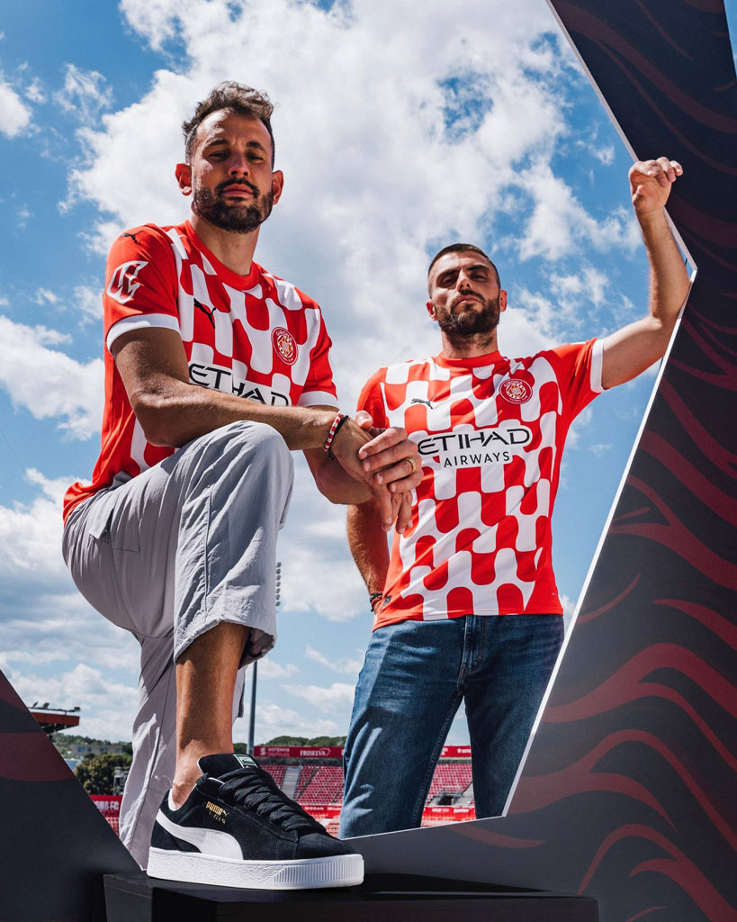 2024-25新ホームユニフォームは伝統のレッドとホワイトを基調としつつも、その2色を使ったグラフィックがユニーク。カーブを描くような繰り返しのパターンは、ホームタウンであるジローナの紋章に使われている波模様だ。
