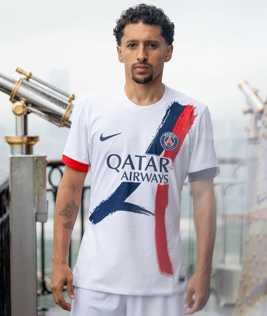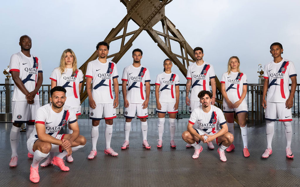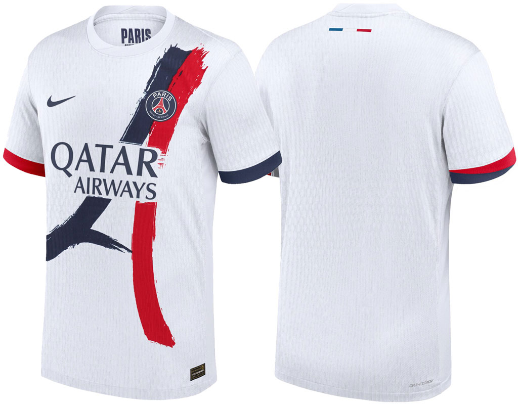 2024-25新アウェイユニフォームはホワイトを基調に、事前の噂通りパリの象徴であるエッフェル塔を描いた1990年代の懐かしいスタイルが復活を果たしている。これは今夏開催されるパリオリンピックを意識したものだろう。