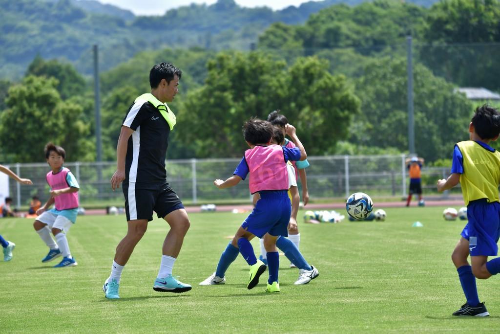 この試合は山忠建設株式会社のプレゼンツマッチとして開催され、イベントの前にはあの元日本代表DF駒野友一さんがゲストとして来場。地元の少年少女を対象にサッカー教室を行い、ともにボールを蹴った。