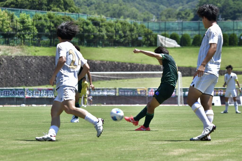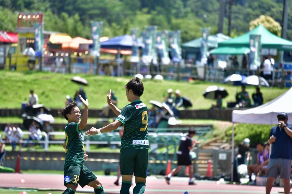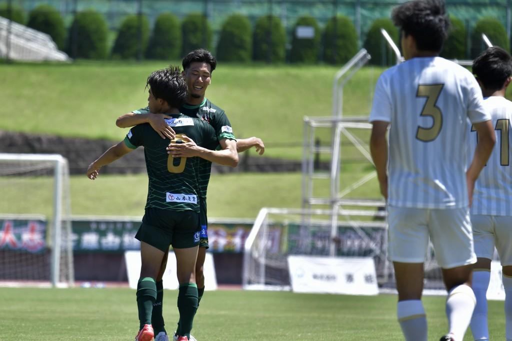 気温が40℃近い暑さの中、ホイッスルから4分でペナルティエリア左に抜け出した和田幸之佑がシュートを放ち、豪快にネットを揺らす。これが和歌山の先制点となった。