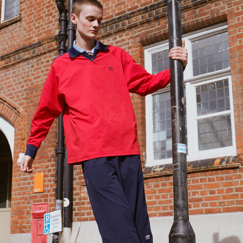 今回のコレクションは、そんなイギリスに古くからあるフットボールサブカルチャーをデザインコンセプトにしており、フットボールを観る時も、ボールを蹴る時も、移動する時もいつでも着⽤できるウェアが展開される。