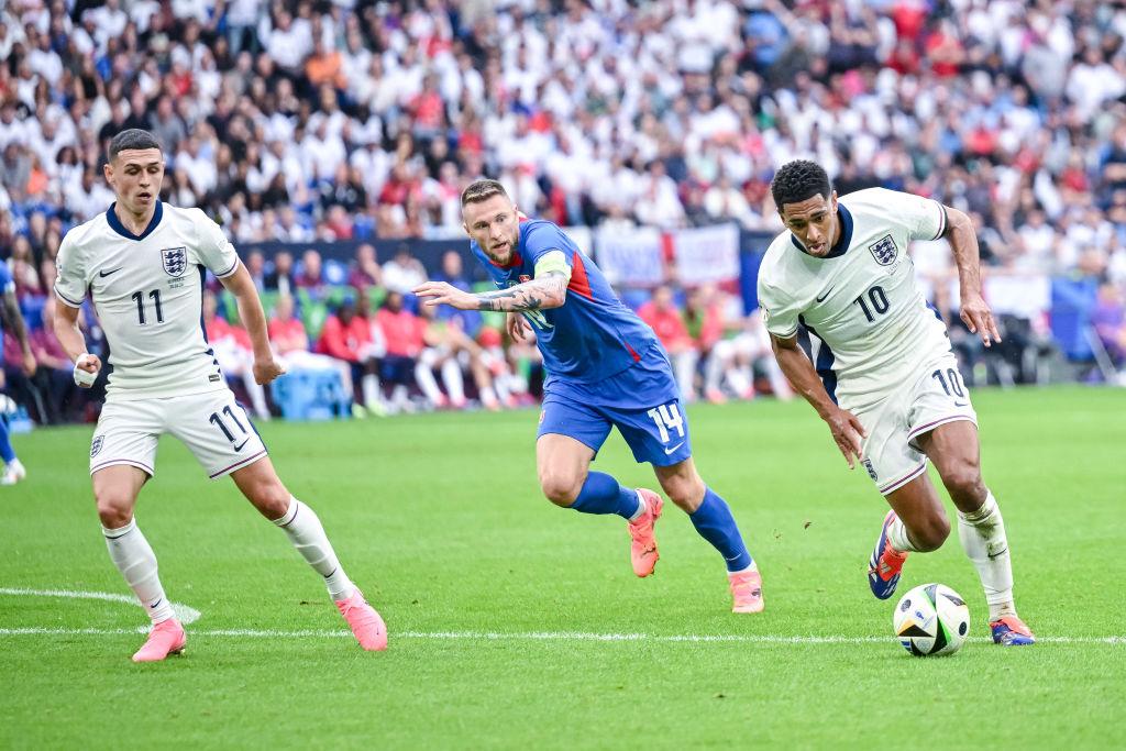 その象徴的な試合がベスト16のスロバキア戦。この試合ではスロバキアに先制され、ビハインドで攻めなければいけない状況にあったが、統率されたスロバキアの守備陣がラインを引き上げたことでベリンガムやフォーデンが前めのポジションでボールを受けることが難しく、自陣でのポゼッションを余儀なくされ、勝ちはしたが非常に危ない試合であった。