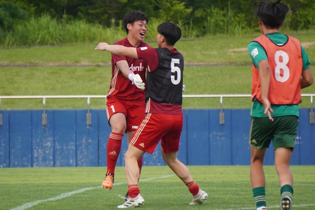 富士大は1番手のキッカーがボールをポストに叩き、仙台大が全員キックを成功させて決着が着いた。激闘を終えた守護神は満面の笑みを浮かべて駆け寄ってきたイレブンたちと喜びを分かち合った。