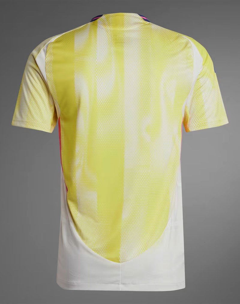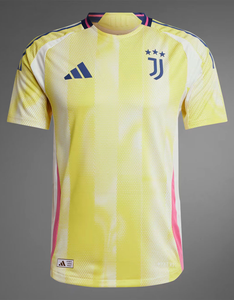 2024-25新アウェイユニフォームは、ホームの定番であるストライプ柄を濃淡イエローで彩るデザイン。差し色の一つにはクラブの象徴的な色であるピンクを使用し、かなりポップなカラーリングに仕上げている。