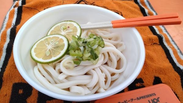 対戦相手の大分さんの名産品であるかぼすを使ったぶっかけうどん。