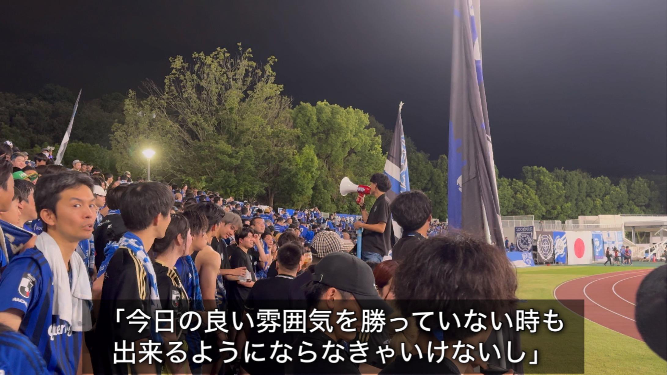 改めて言うけどこういう苦しい状況、選手たちは苦しい状況だからこそ、俺達はさ、今日クソ熱いけど必死こいてさ、腹の底から声出して、次の日の仕事とか、もしかしたら明日デート行く人も居るかもしれないけど、別に声枯れてたっていいじゃん。ふくらはぎ攣ったっていいし、手から血出たっていいし、でもそれくらいピッチの選手たちがもの凄い死に物狂いで闘ってるから、俺達サポーターもスタンドで死に物狂いで選手たちと一緒に闘う空間、みんなで作っていこう」